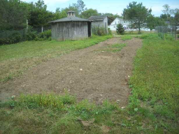 This was my first test area. It was a chicken yard up until this year. It was full of potholes from chickens digging their dust baths and when I tilled it up to level it (and work in the chicken poo) I turned up a crapload of rocks.