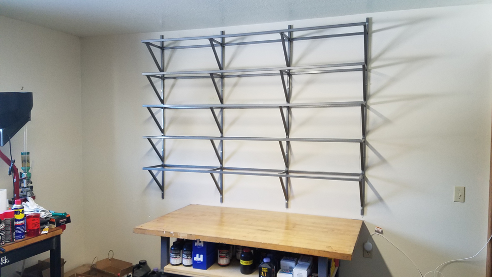 I have three sets of the shelving that @jyoutz links to above and it's decent stuff but expensive for what it is. I have a couple in the garage and a set in my gun room, but when it came time to add a really nice and functional set to the wall for all manner of firearms related stuff, I made my own.
