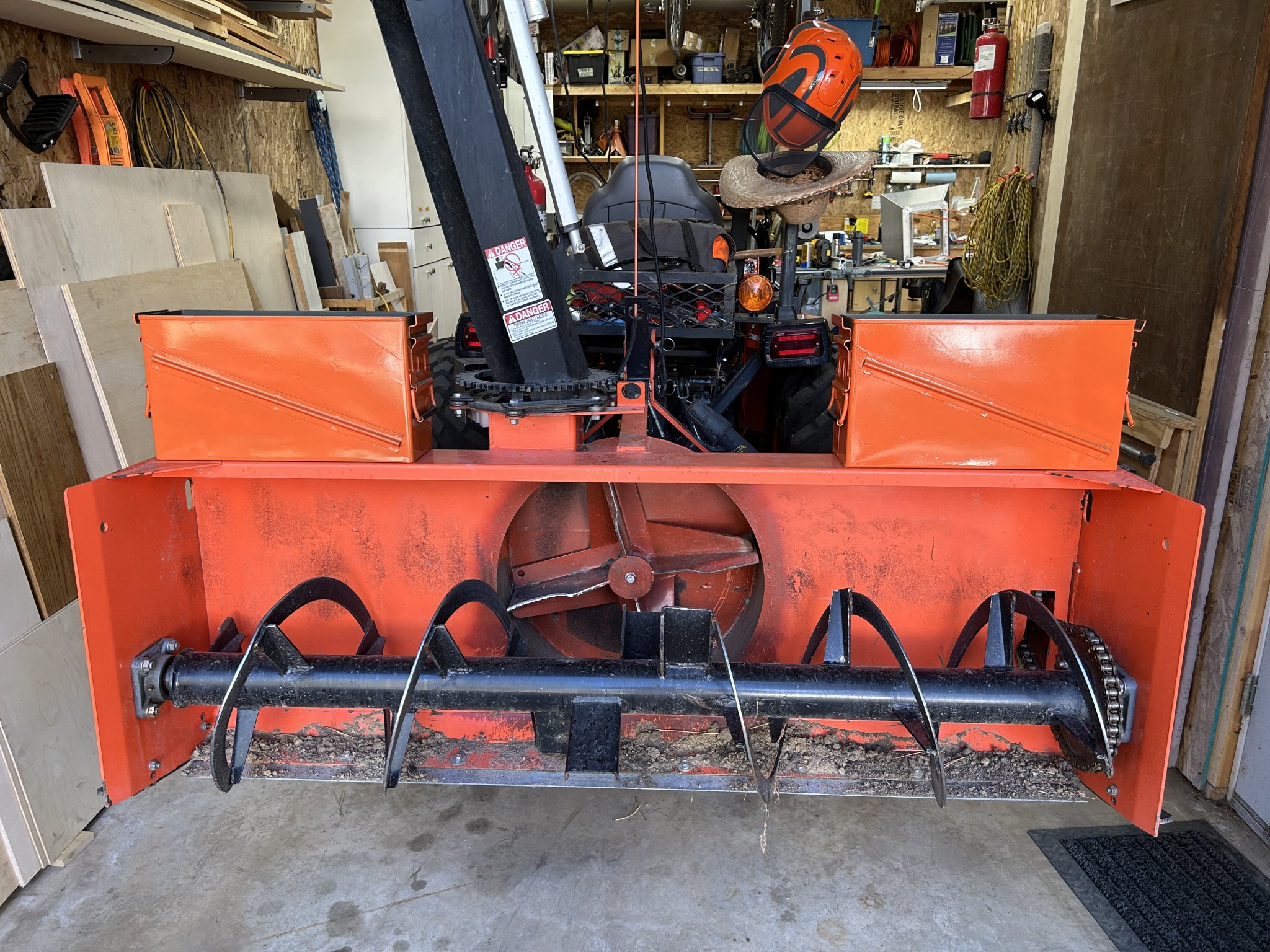 That's when it hit me - I could store them *on* the snowblower. That way the chains will be where the tractor is, and it's stored inside in the winter.
