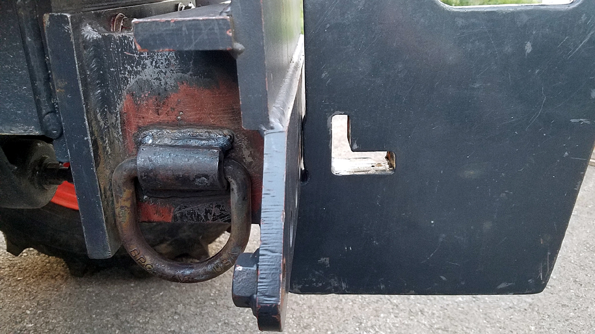 I welded on D-rings to the front "bumper" or weight bracket on both tractors. I have a spare front bumper for the MX and will redo the D-rings when I finally get around to fabricating a custom grill guard.
