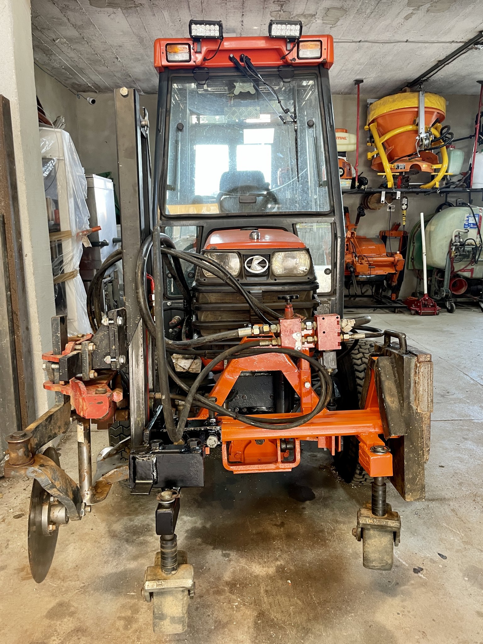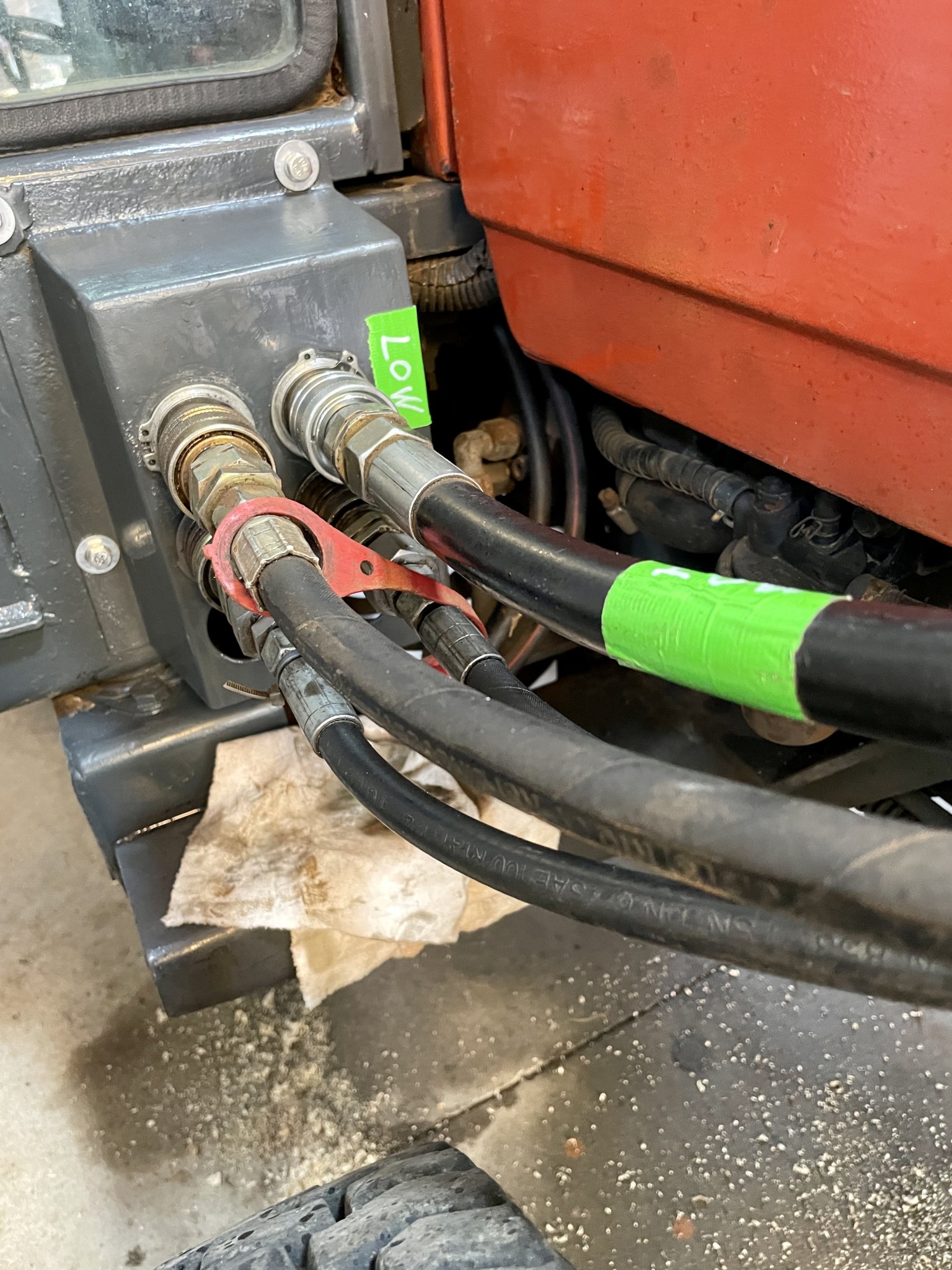 Some more photos from today, painted everything and some minor tweaks, had to install a different solenoid and power, had two new hoses made and hooked them up under the tractor up to the front... all tested in the garage, works great. We will see it in action in the vineyards, next week, I hope, when the rain is over...