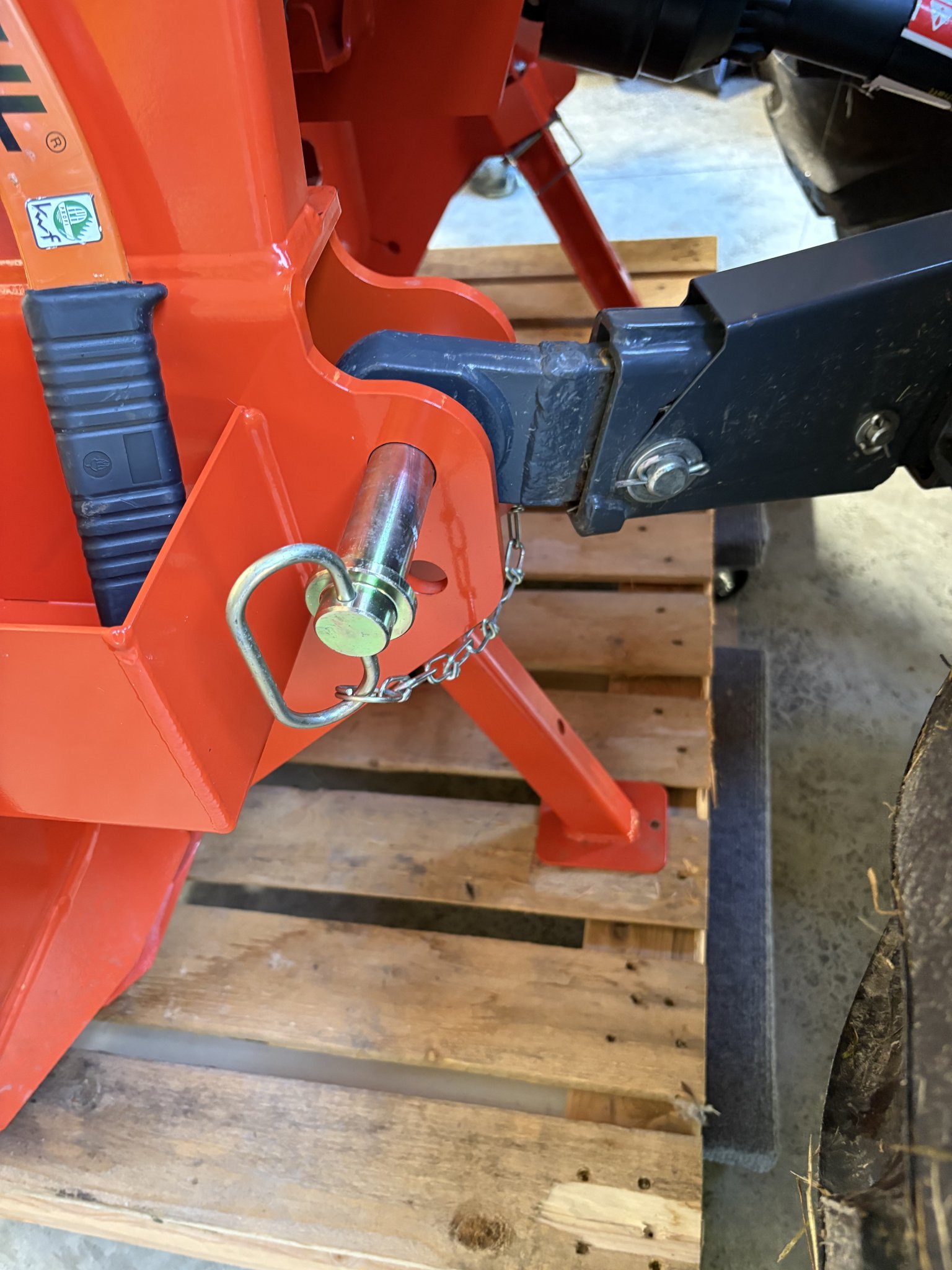2. I used the Cat 2 Pin locations, and that holds the implement a few inches lower to the ground, reducing departure angle…the blade does a fair job grading🙄. I think on occasions when I need to access that same location I may use the cat 1 pin locations. The NEW hydraulic top link combined with the height of the top link pin location on the implement limits how high I can lift the implement (cross bar across back of tractor prevents lifting 3 pt to full height with this implement on as it has a very hi top link relative to most attachments…the implement is not would not QH compatible.