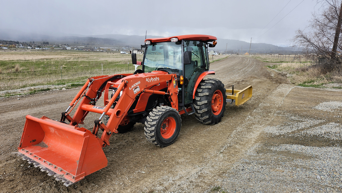 One day, I'll get one of these levelers.A couple of weeks ago I spent an hour fixing 20 or so small potholes that were on the county road but only a few feet from the bottom of my driveway. The following week they finally got to grading and made a mess of the transition between my driveway and the county road. This afternoon I spent some time on the MX fixing their sloppy work and making some passes on the lower driveway.