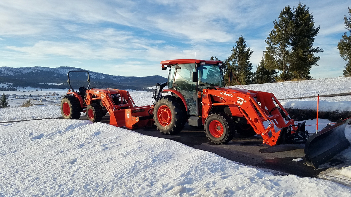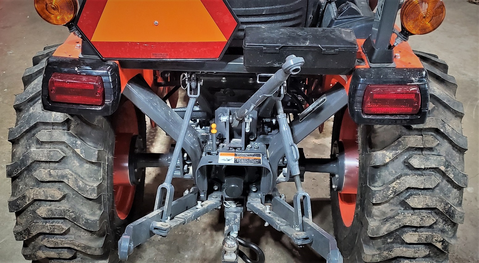 I get back up there and a communications crew had come by and put a truck up the road with a flasher on it so we can avoid getting killed with people coming down the hill. I hook up to his front tow hook and my tow bar and in 4wd Low pulled him out, up hill, on snow and ice with little sanding. A couple yanks, nothing strenuous on the Kubota really, Turf tires, no chains. I was really impressed.