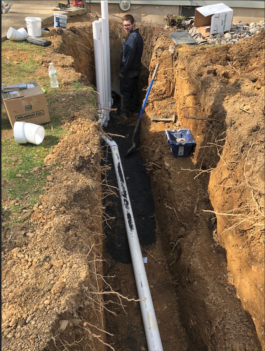 What you don't see are the vent lid and caps on the pipes. I insist that they place them on temporarily when I backfill for obvious reasons.