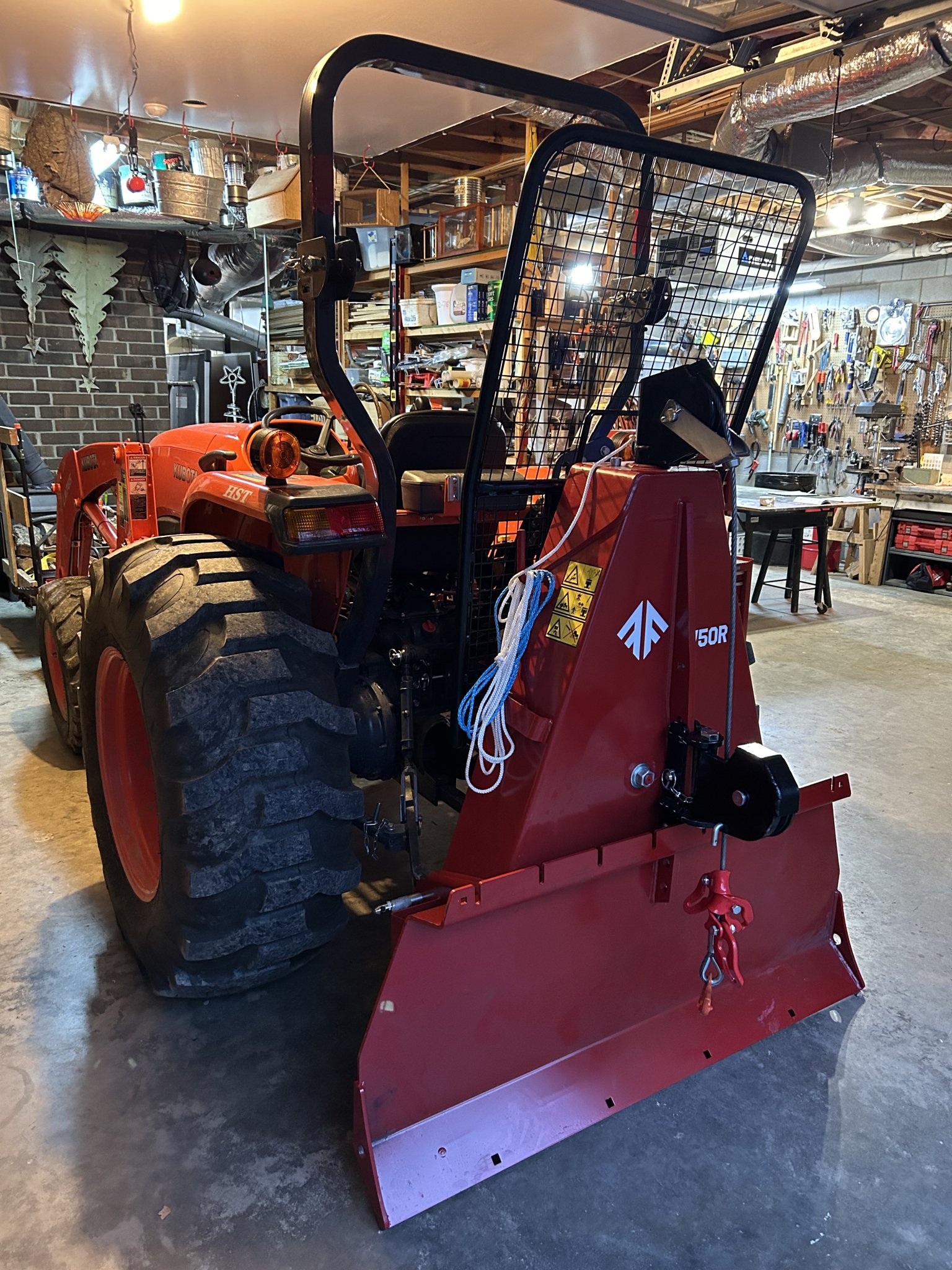 Hooked to the 3 point, it was back inside to fit the PTO shaft and finish assembly.
