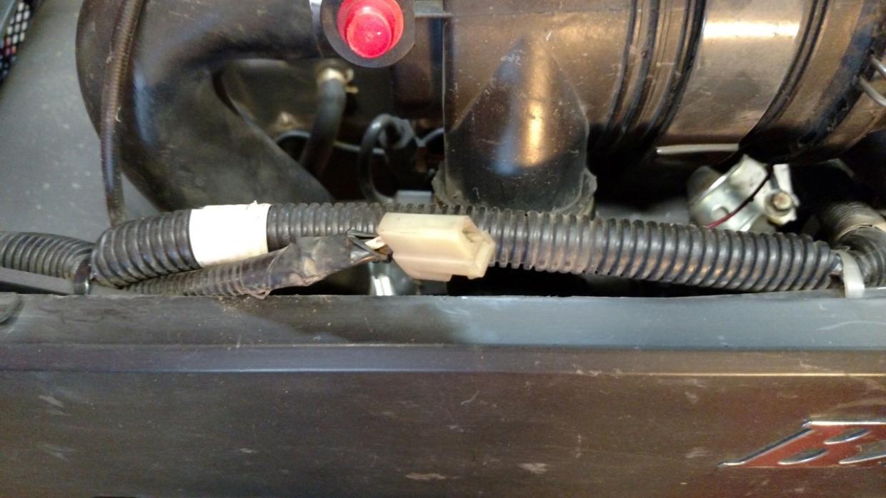 As it shows in the picture, it comes out of the harness next to the aircleaner on the left side.