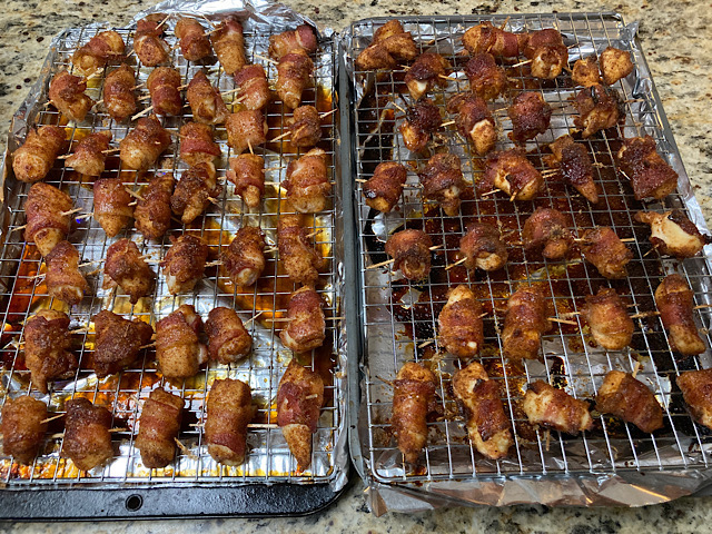 Bacon wrapped chicken breast slices and rolled in a mixture of brown sugar, chili powder, and whatever else she used.
